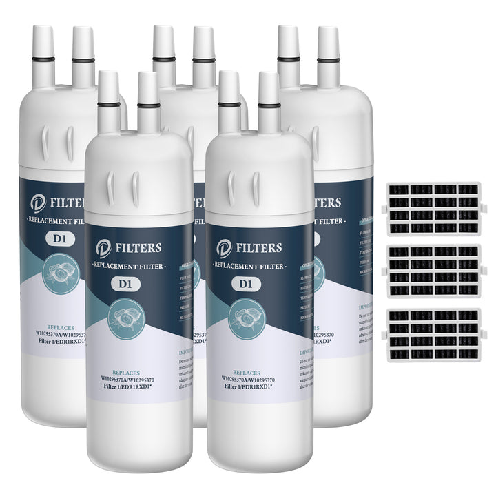 This(D1) refrigerator water filter 1 could reduce 24 impurities in water as well as other harmful contaminants. The fridge filter is compatible with Everydrop Water Filter 1, W10295370A, EDR1RXD1 Water Filter and 9081 Water Filter. We recommend to replace the filter every 6 months to ensure the filtration performance.