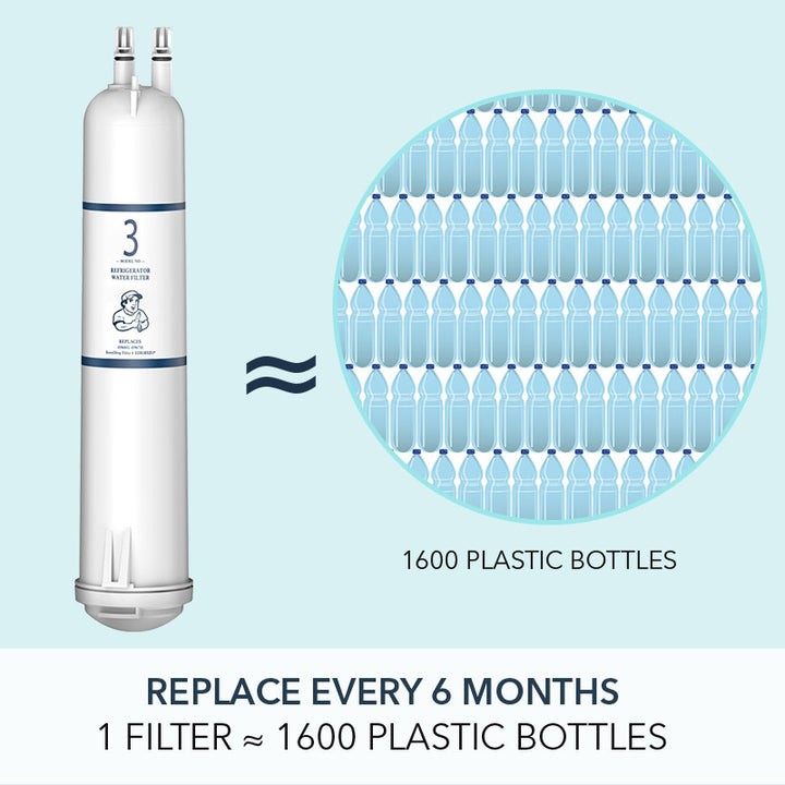 This refrigerator water filter 1 could reduce 24 impurities in water as well as other harmful contaminants. The fridge filter is compatible with Everydrop Water Filter 3, 4396841, 4396710 EDR3RXD1 Water Filter and 9083 Water Filter. We recommend to replace the filter every 6 months to ensure the filtration performance.